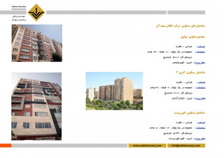 آدرس پروژه : تبریز، خیابان آزادی. یک بلوک،9 طبقه، 42 واحد، زیربنای کل 7000مترمربع.